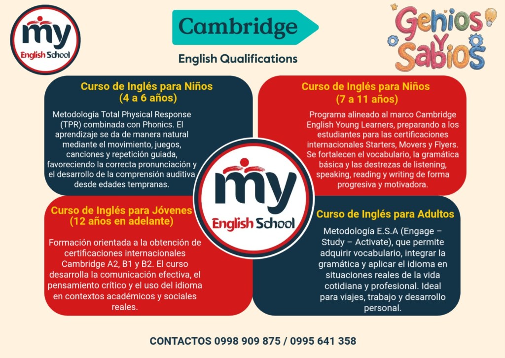 My English School ofrece cursos de inglés para todas las edades, con programas alineados a Cambridge English Qualifications.